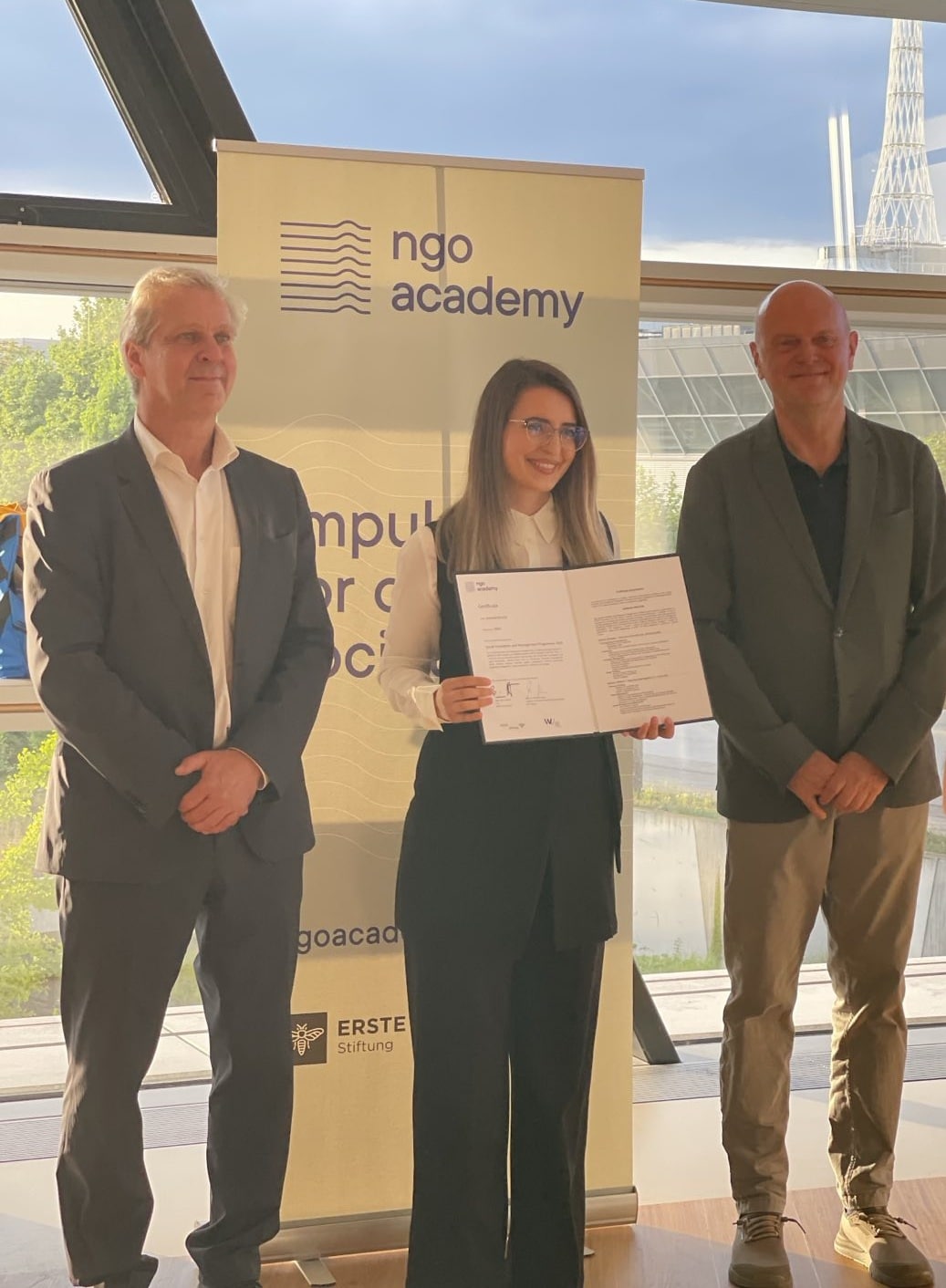 Saranda Murturi, Menaxhere e Programit të Edukimit Formal në TOKA, ka përfunduar me sukses pjesëmarrjen në Programin katërmujor për Inovacion Social dhe Menaxhim, i cili u mbajt në Vjenë dhe u organizua nga Akademia e OJQ-ve në bashkëpunim me Universitetin e Biznesit në Vjenë (WU Vienna) dhe Fondacionin ERSTE.